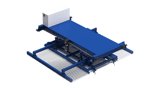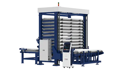 Ce robot de déchargement utilise une servocommande, garantissant un positionnement précis et des mouvements rapides et flexibles. Sa structure à fourches en forme de peigne assure sécurité et fiabilité.