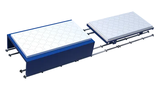 Plateforme de tri à double niveau (haute et basse), gain de place au sol, production à double poste de travail, capacité de charge maximale de la plateforme (matières premières) : 3 tonnes.