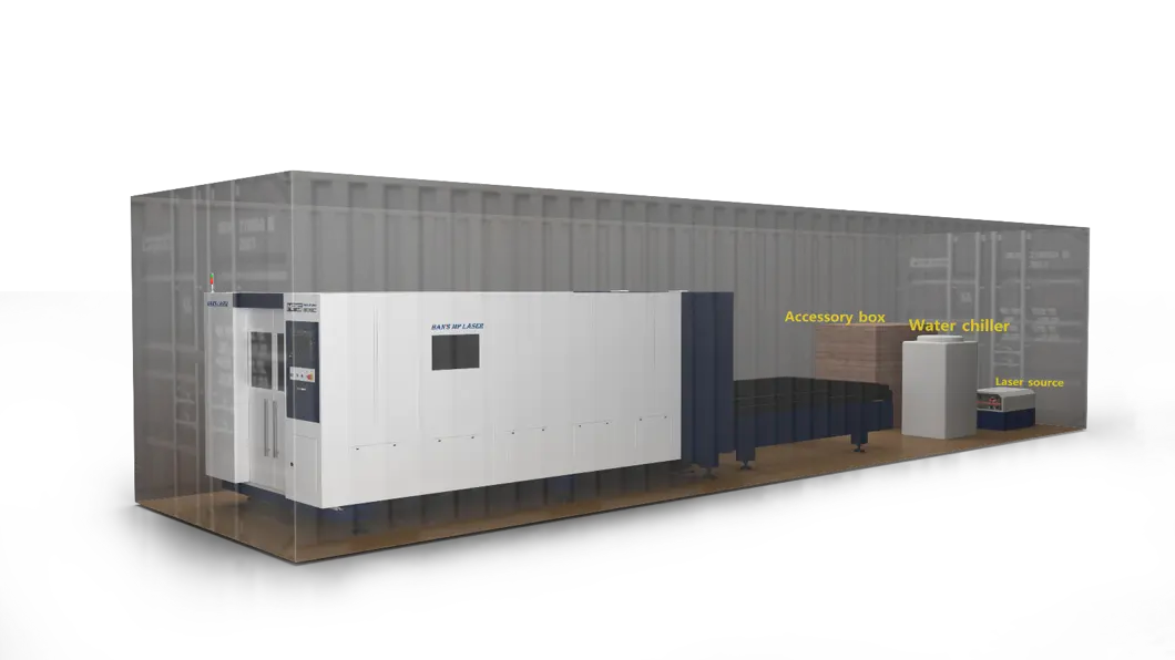 La machine complète 3015CA peut être chargée dans un conteneur 40GP, ce qui réduit de 25 % l'espace au sol par rapport à la méthode d'emballage précédente et permet de réaliser d'importantes économies sur les frais de transport.