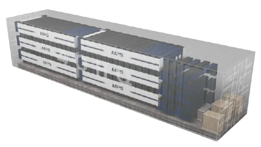 Six unités MPS D3 partagent un conteneur 40HQ.